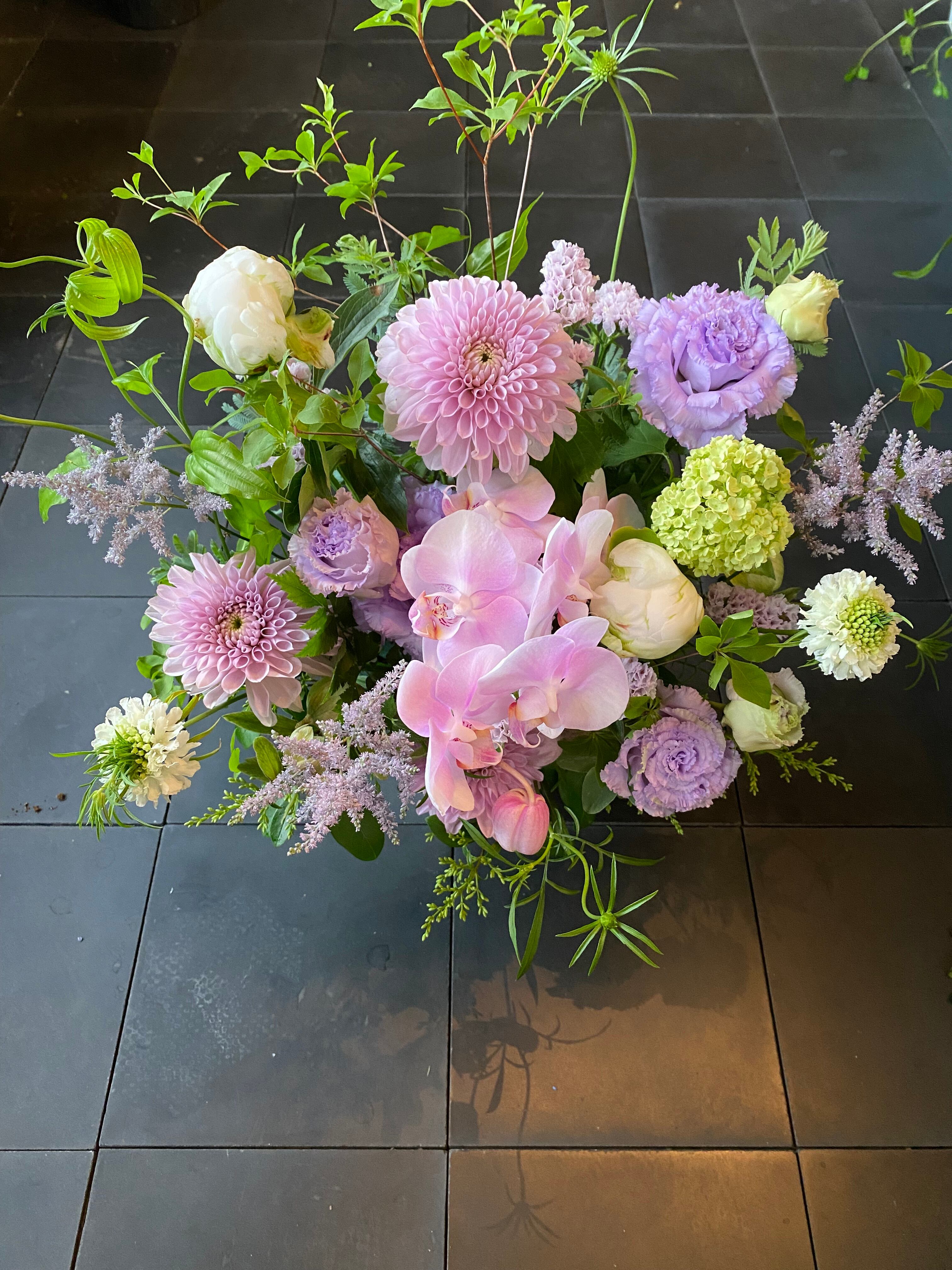 花が散ることなく長く楽しめるよう、花材の選定にもこだわりました。季節の変化に合わせて美しさをキープするお手入れ方法もお伝えいたしますので、お手元に届いたらすぐに飾っていただけるかと思います。