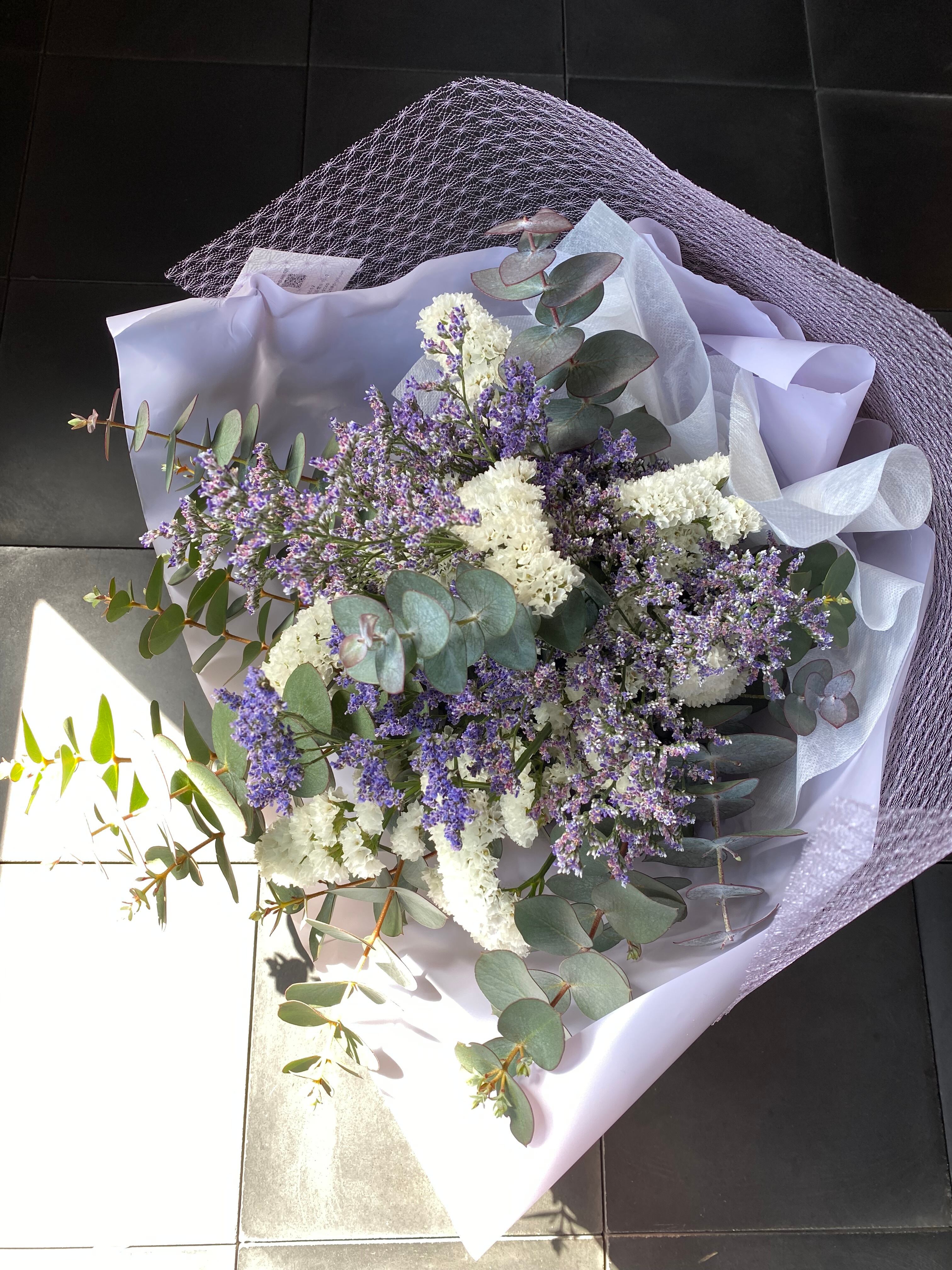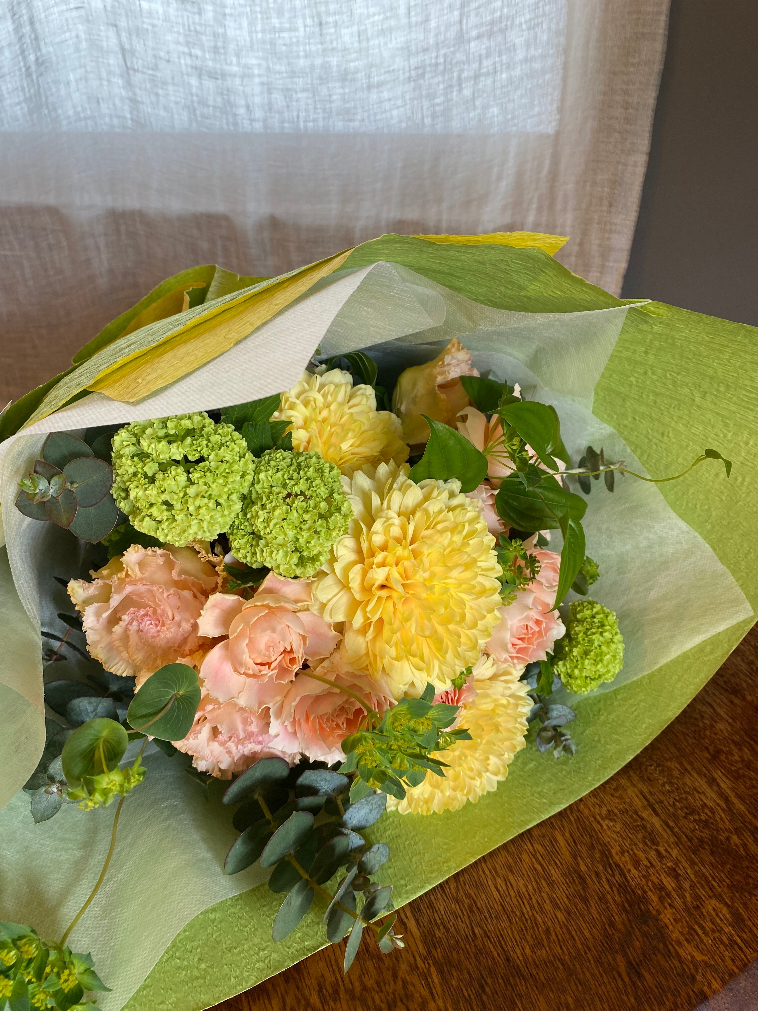 季節のブーケ(L)は、その名の通り、季節ごとに選ばれたお花で構成された贅沢なアレンジメントです。鮮やかな色合いと豊かな花材が、お部屋を一気に華やかに演出してくれます。季節の変わり目や特別な日にぴったりのブーケです。 私たちは、お客様にお届けする花束には、ただ商品を提供するだけでなく、その花々が描く物語を伝えることを大切にしています。季節の変わり目や記念日、お祝いの日など、お客様が大切に思う瞬間にふさわしいお花をセレクトし、丁寧にアレンジメントしています。